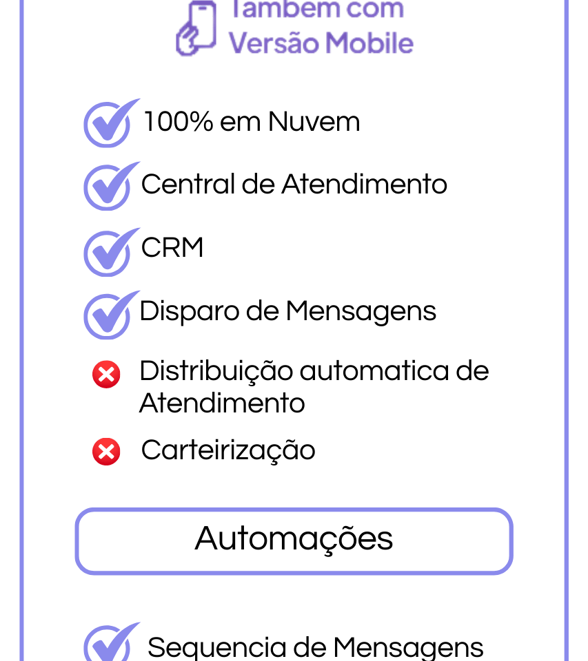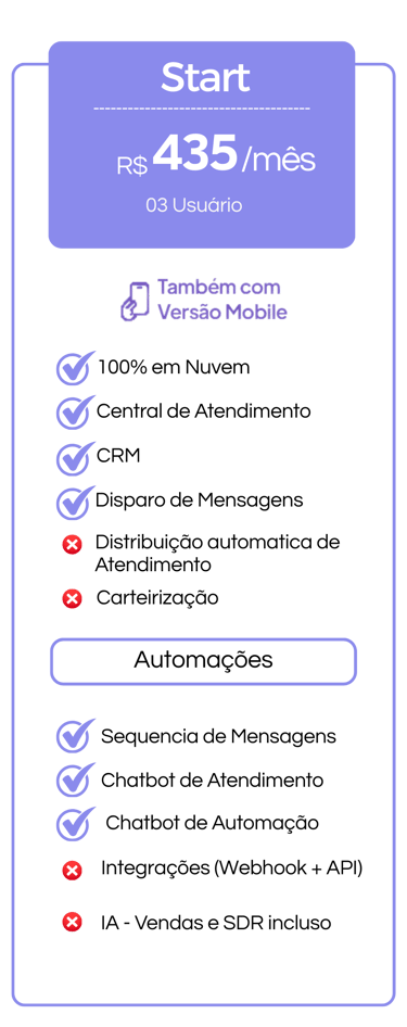 Ideal para pequenas empresas que buscam automatizar atendimentos via WhatsApp. Inclui chatbot básico e integrações simples para otimizar o fluxo de trabalho com foco em resultados.