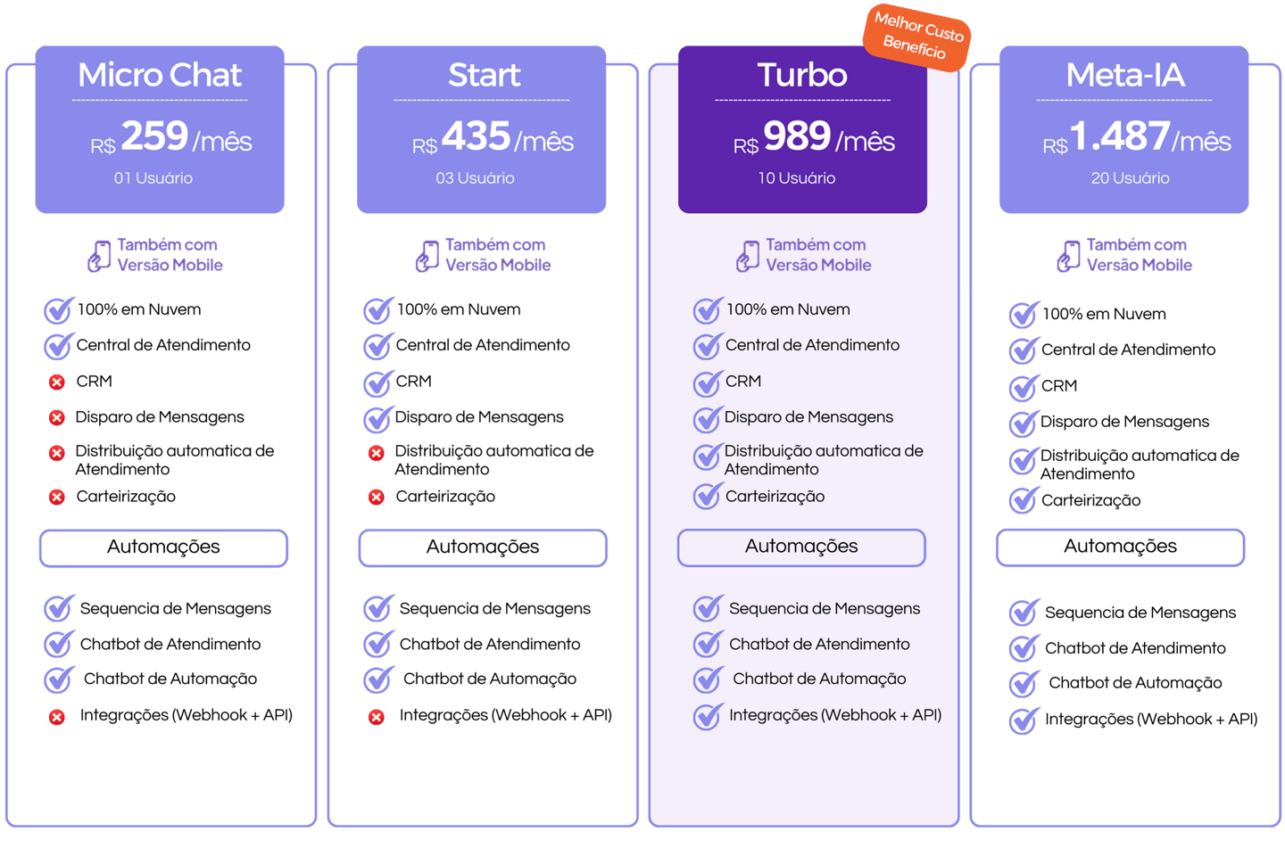 Escolha o melhor plano para sua empresa e transforme o seu atendimento digital por WhatsApp e Direct com o Ópera